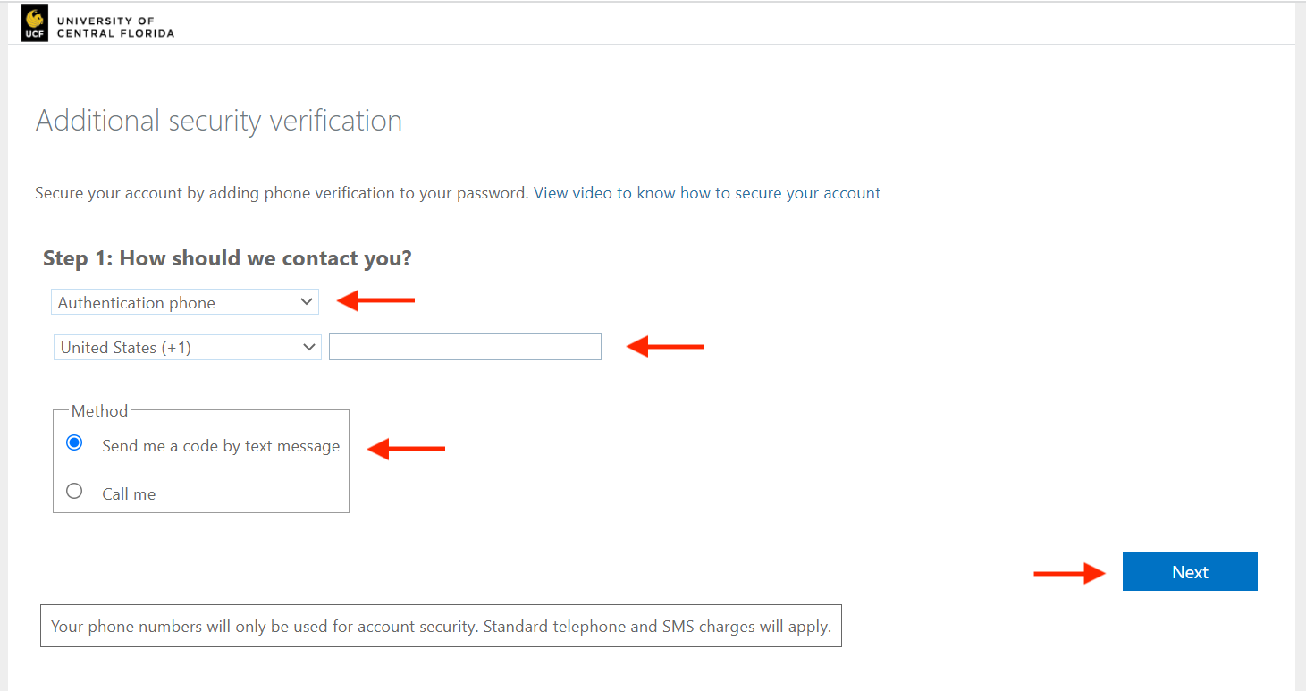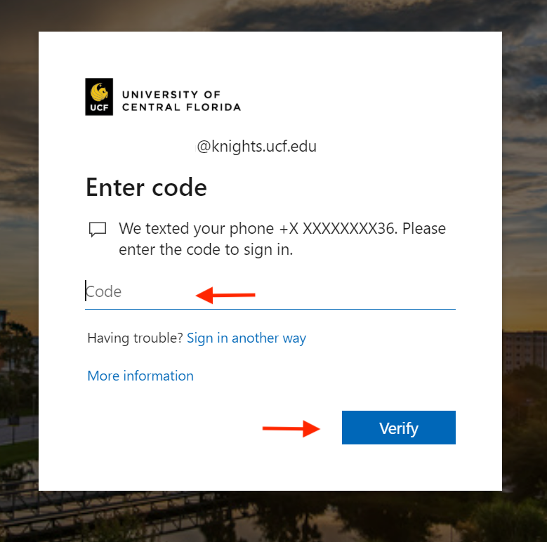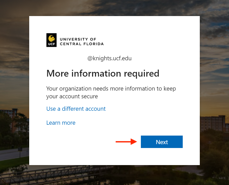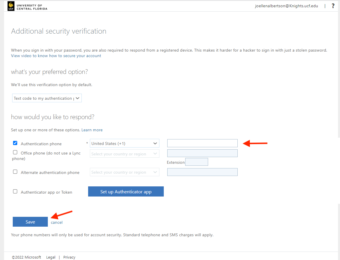 - Go to https://aka.ms/mfasetup and sign into your Knights Account