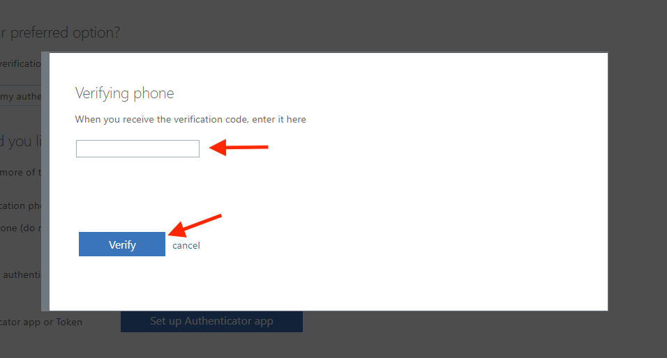 - Select Authentication Phone, select your Country code, and enter your phone number, then click Next